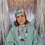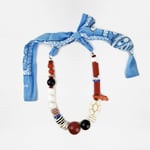 Collana in perle infilate a mano, di diversi materiali: corallo, perle di fiume, legno, plexiglass e resina.